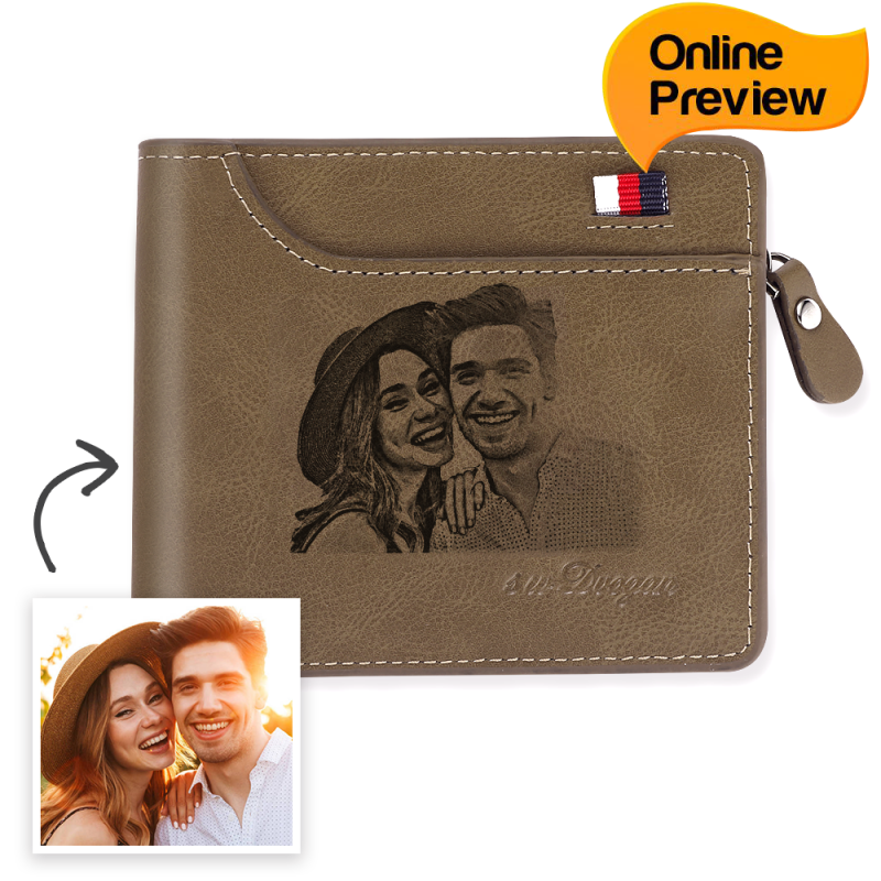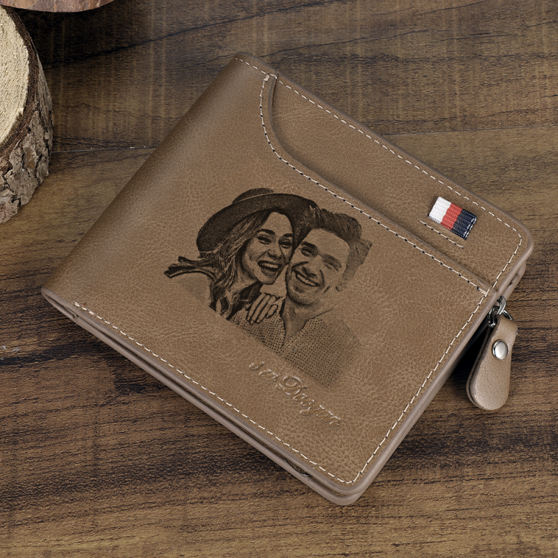 Men's Custom Engraved Photo Wallet Brown Leather (Design Online & Preview)