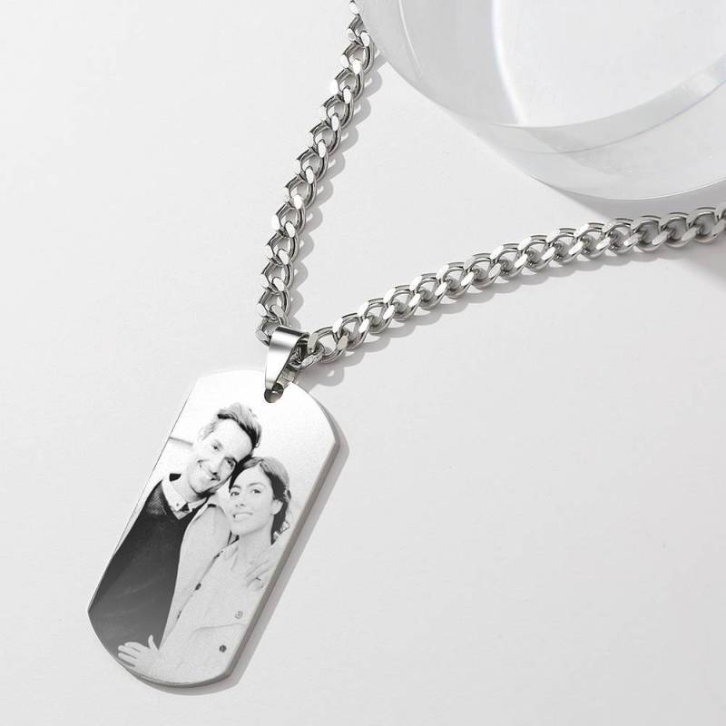 Men's Custom Photo Engraved Necklace Stainless Steel