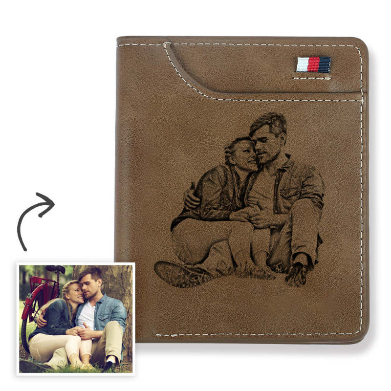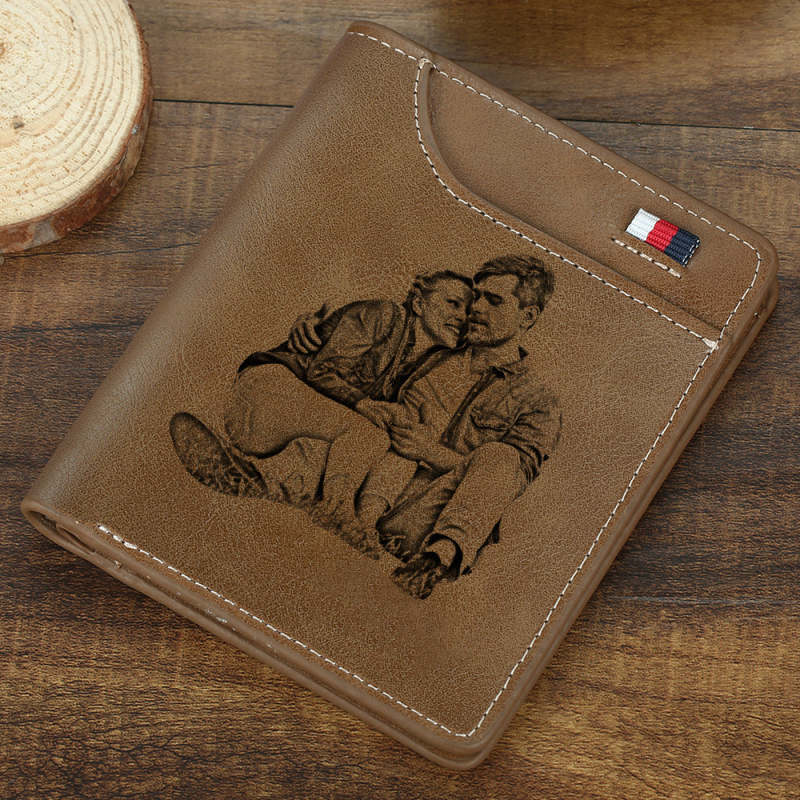 Men's Personalized Photo Engraved Wallet Brown Leather
