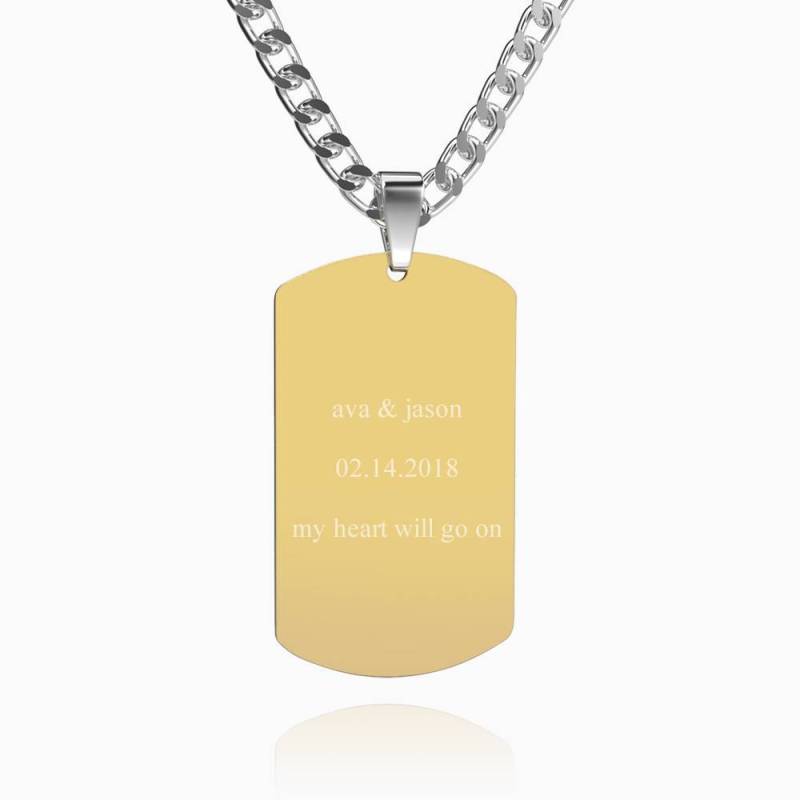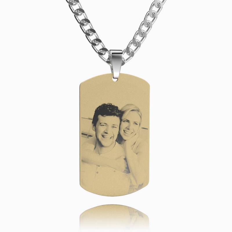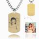 Men's Photo Engraved Dog Tag Necklace 18k Gold Plated Stainless Steel Pendant