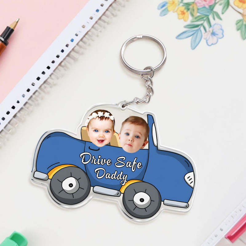 Personalized Face Acrylic Keychain Drive Safe Daddy Father's Day Gifts