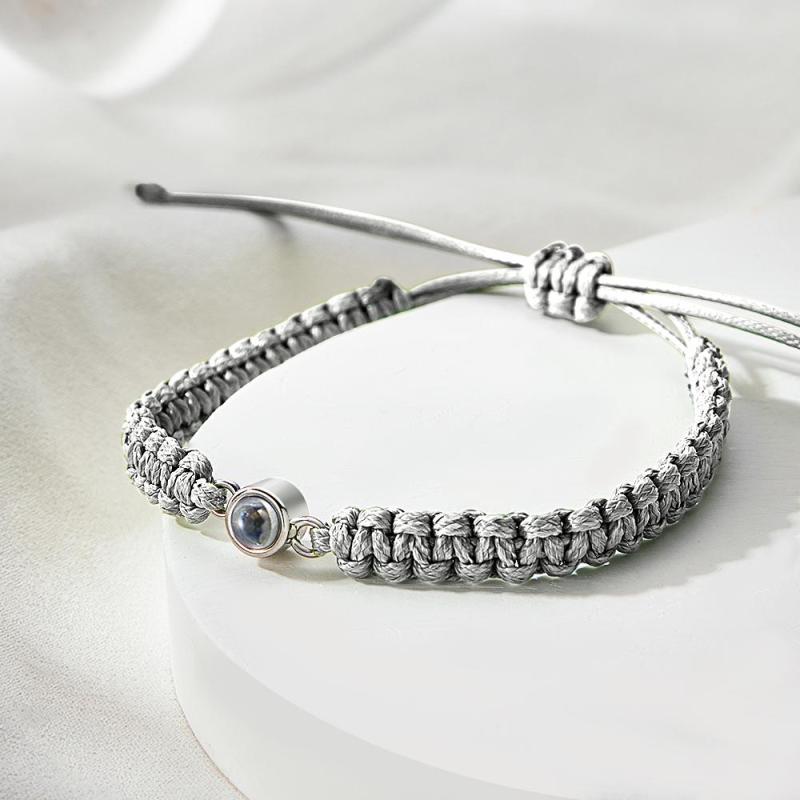Personalized Braided Photo Projection Bracelet Fishtail Rope Men's Bracelet Hand Braided Bracelet Father's Day Gift for Men