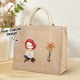 Personalized Back To School Cartoon Women Flower Jute Tote Bag with Name Wedding Birthday Gift for Her