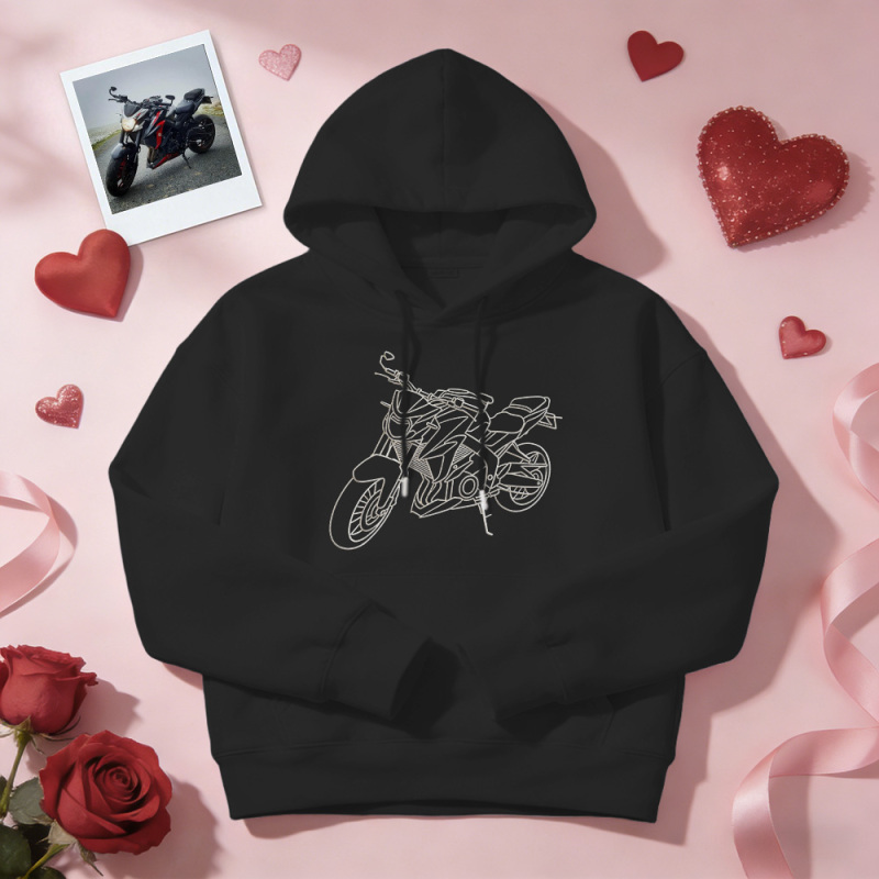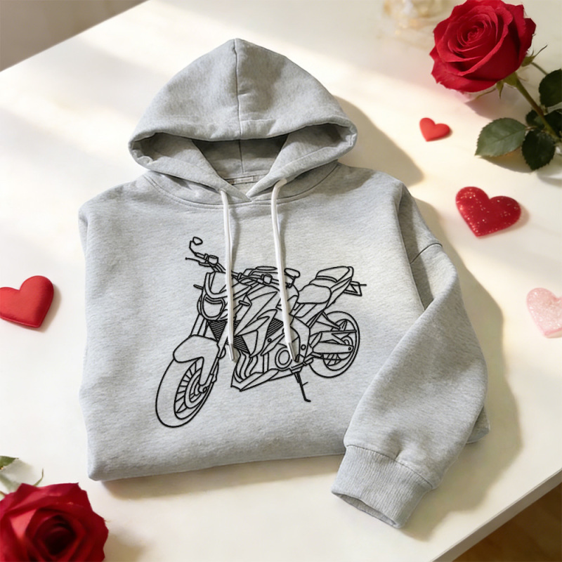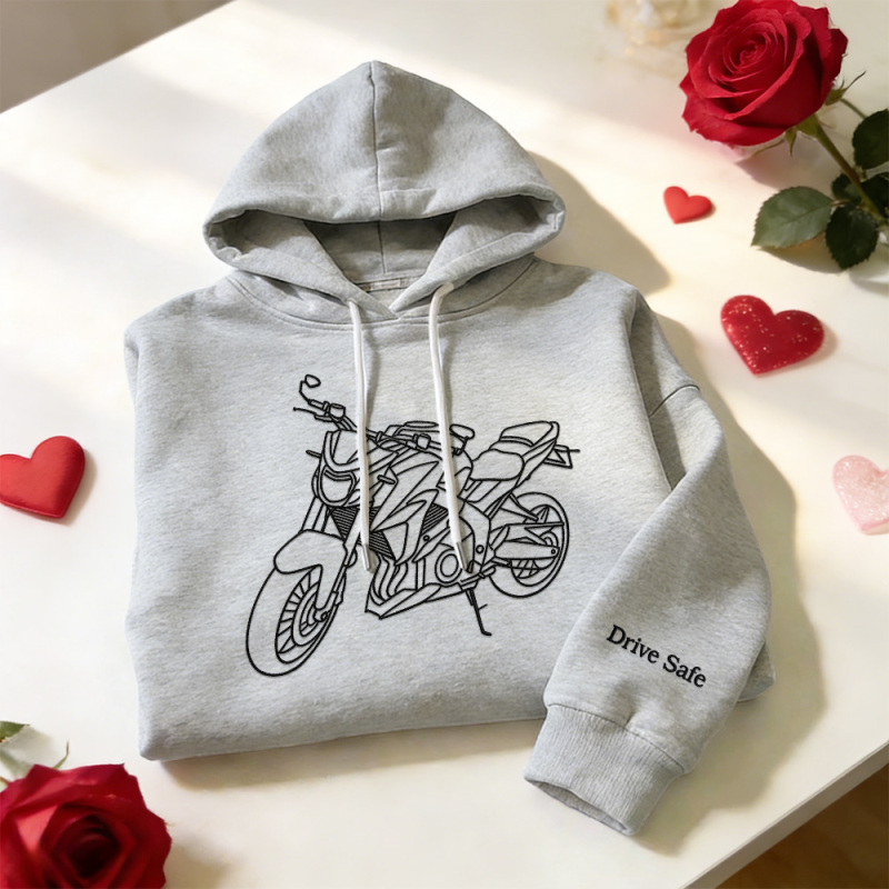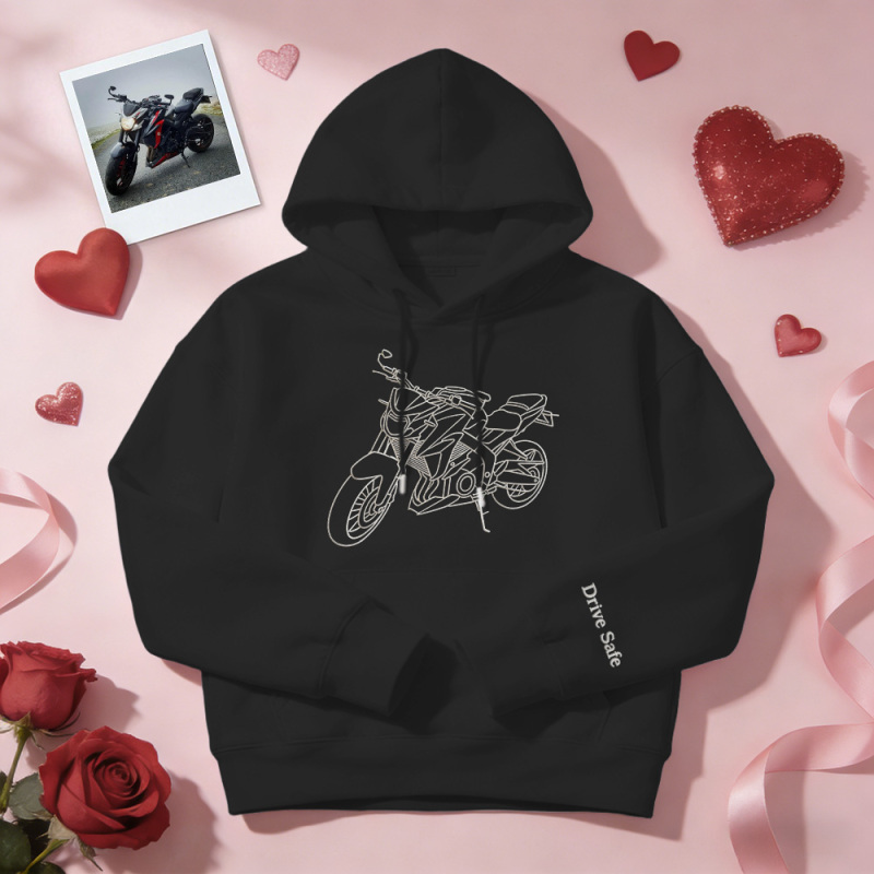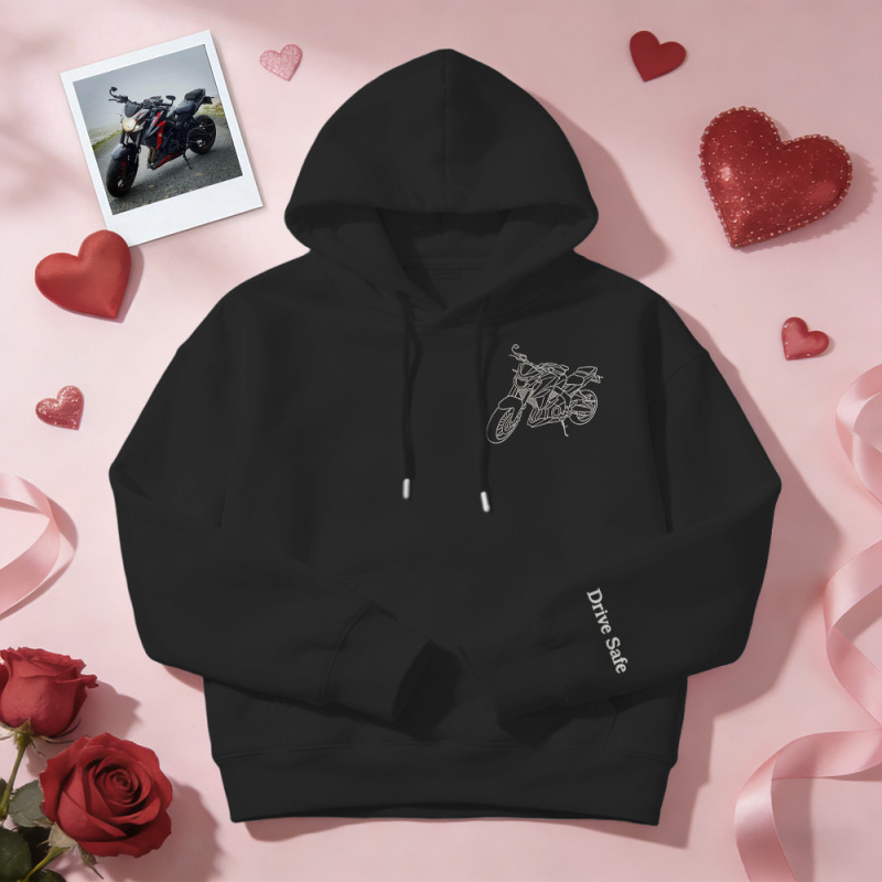Personalized Embroidered Premium Hoodie With Outline Image Of Your Motorcycle