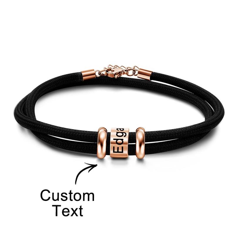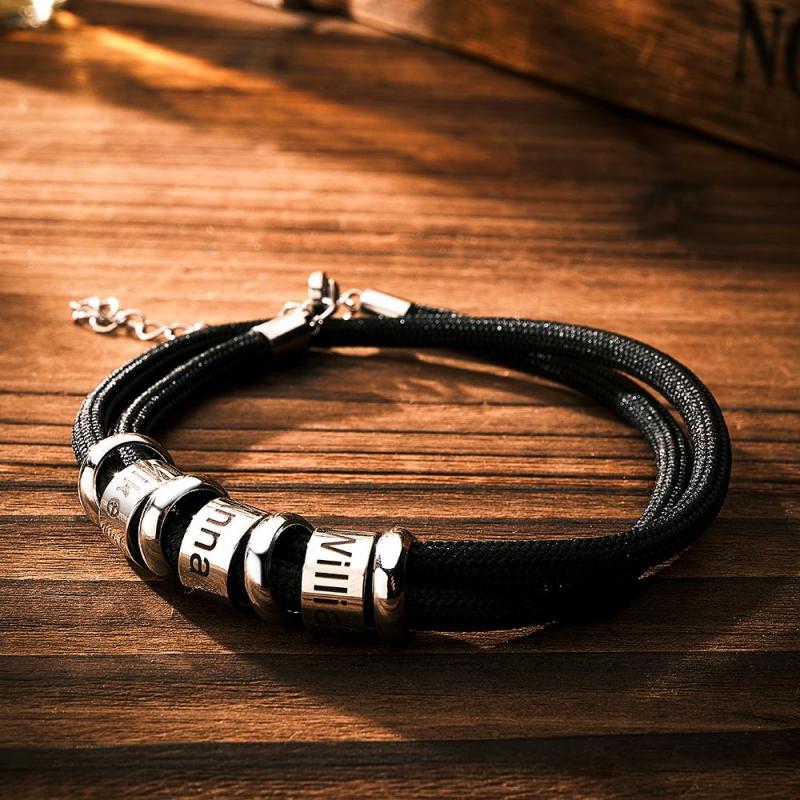 Personalized Engraved Beads Braided Bracelet Custom Name Bracelet Father's Day Gift