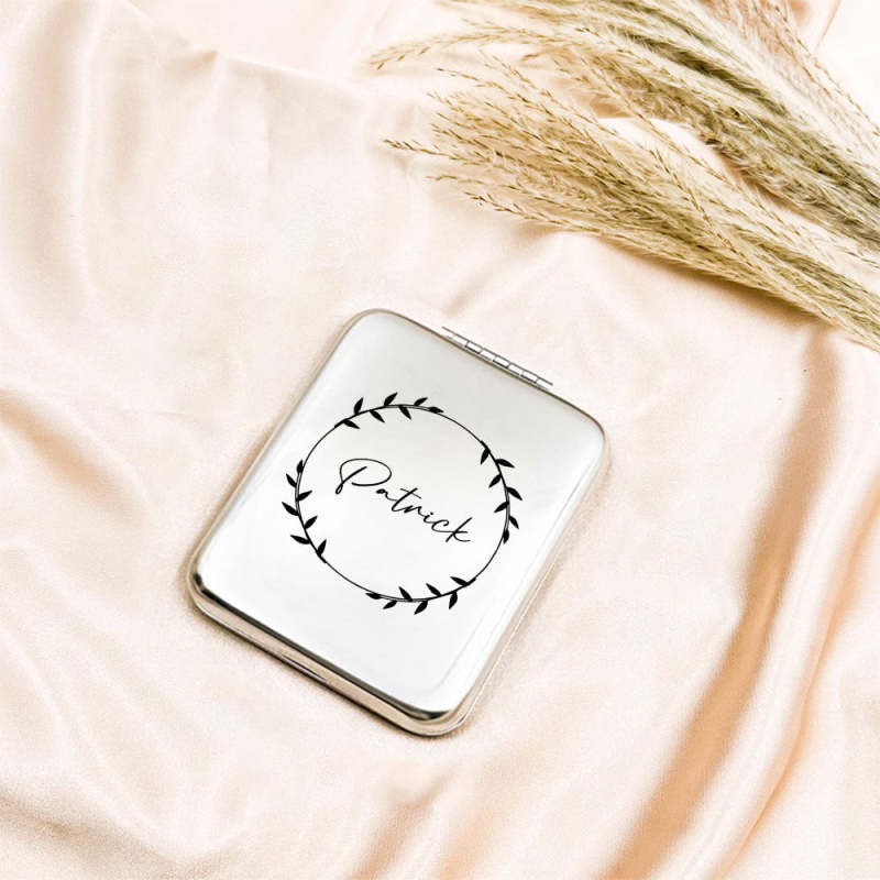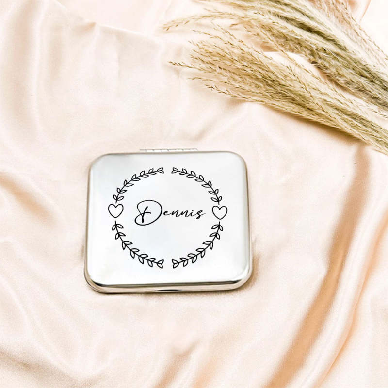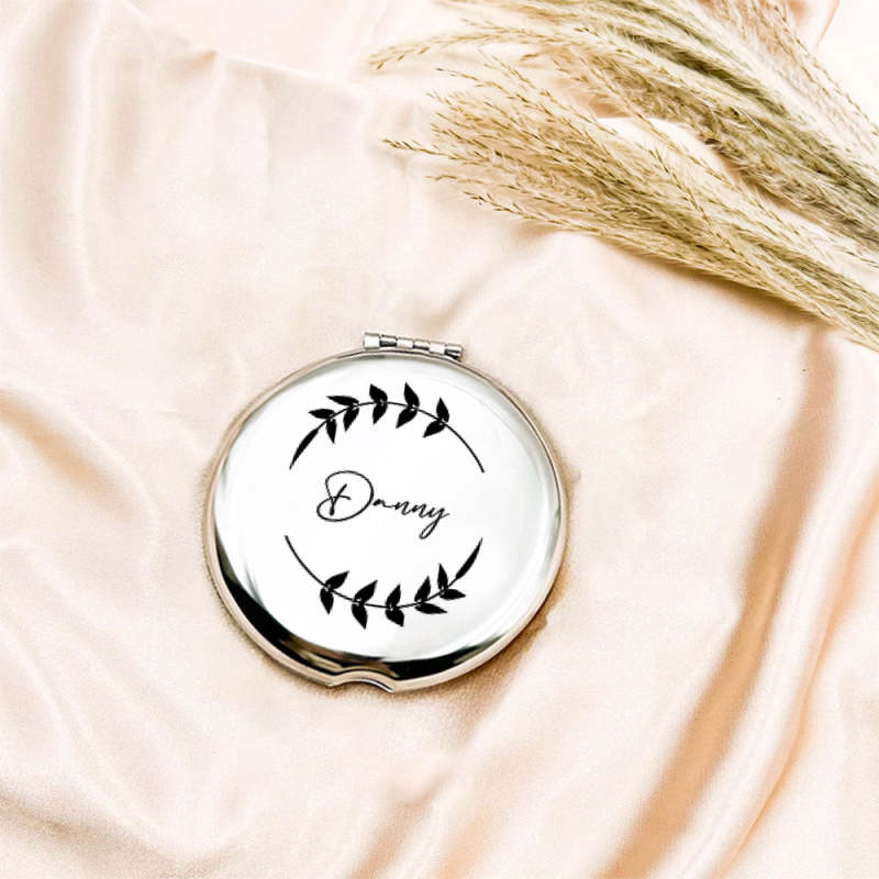 Personalized Engraved Silver Compact Mirror Favor, Custom Engraved Name Pocket Mirror, Gift for Her, Bridesmaid Gifts, Wedding Party Gifts