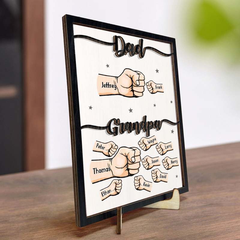 Personalised Names Fists Bump Dad Grandpa Wooden Plaque Father's Day Gift