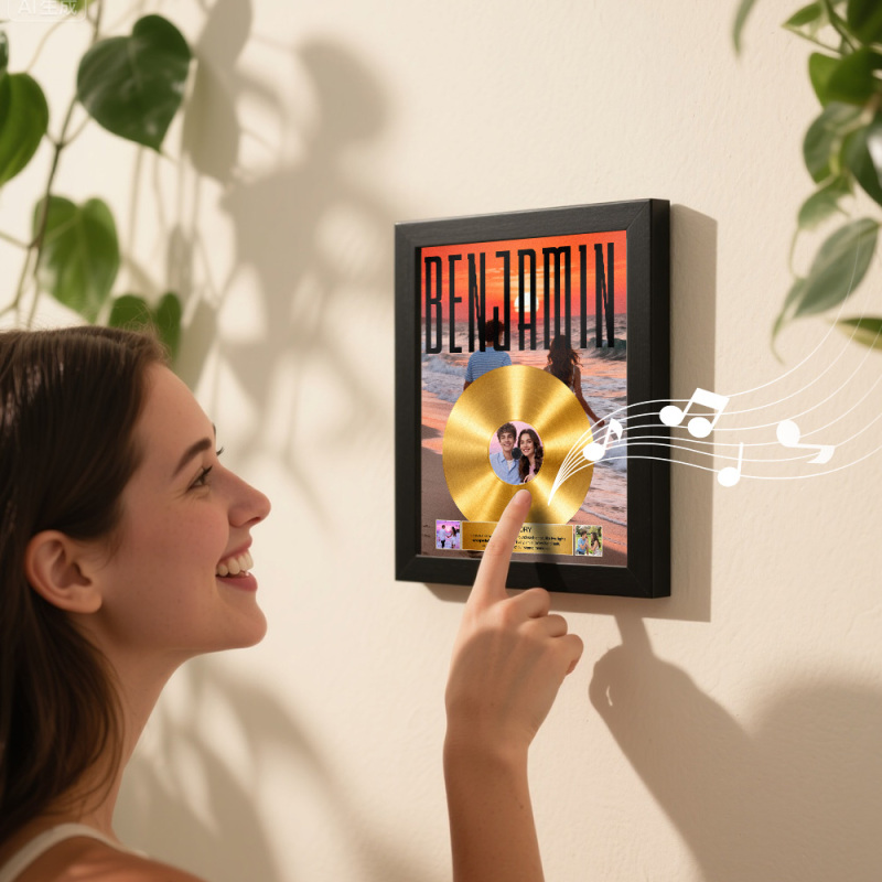 Personalized Golden Record Music Decor Anniversary Gift for Couple's On Valentine's Day
