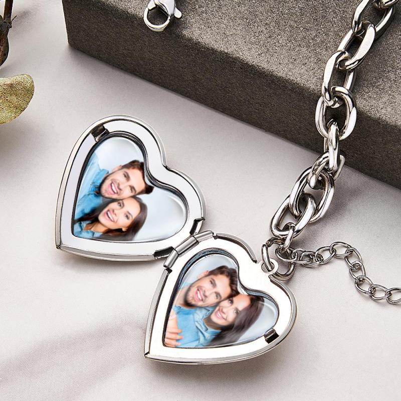 Personalized Heart Locket Bracelet Custom Vintage Adjustable Link Bracelet Gifts For Men