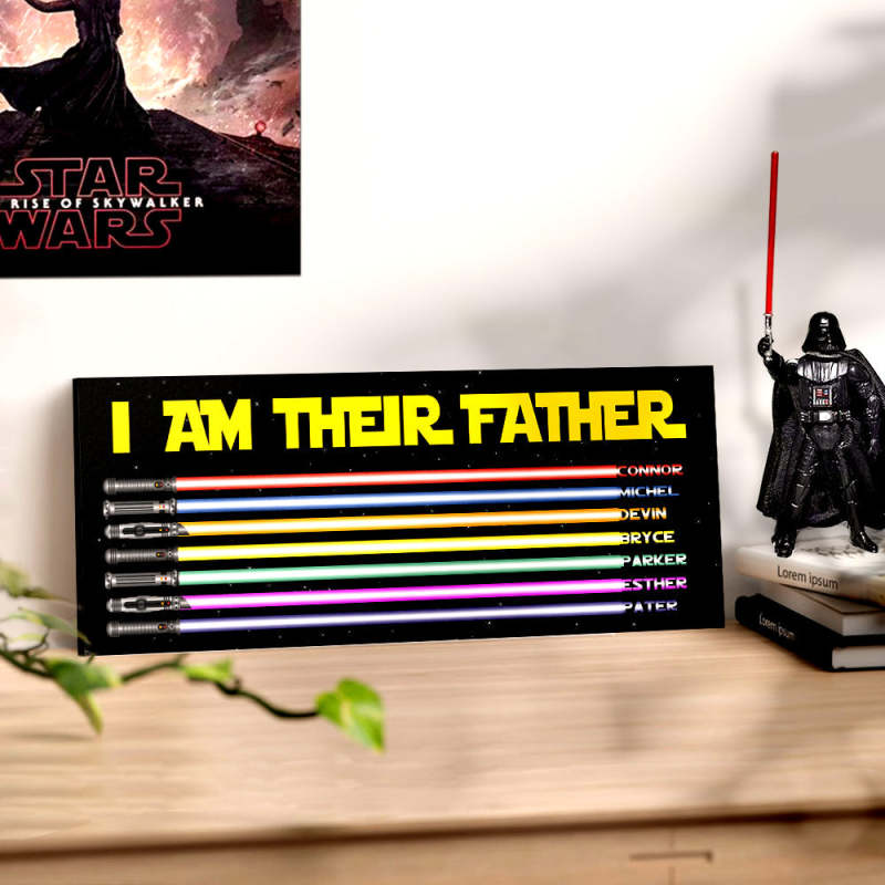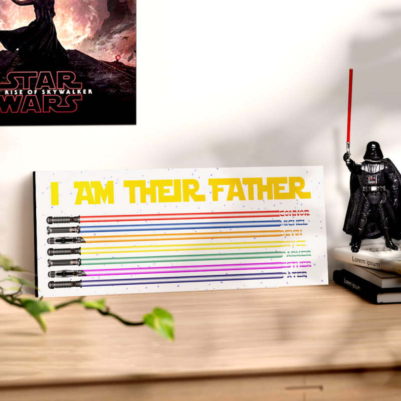 Personalized I Am Their Father Lightsaber Wooden Sign Birthday Gift for Dad