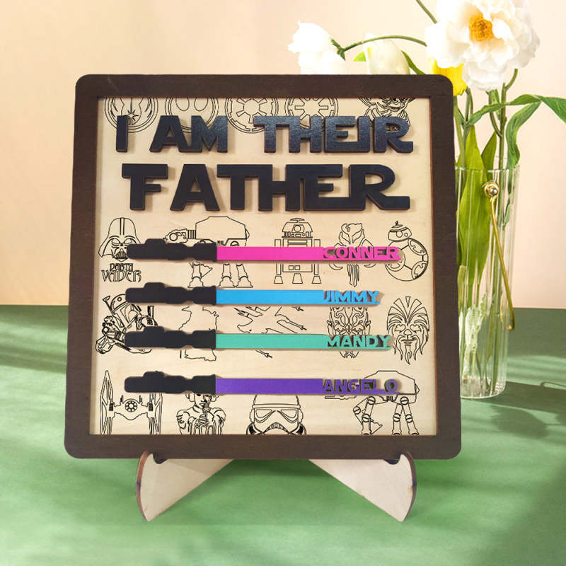 Personalized I Am Their Father Sign Wooden Lightsaber Plaque Father's Day Gifts