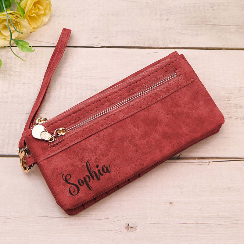 Personalized Leather Wallet with Wristlet Custom Text Wallet Birthday Bridesmaid Gift for Her