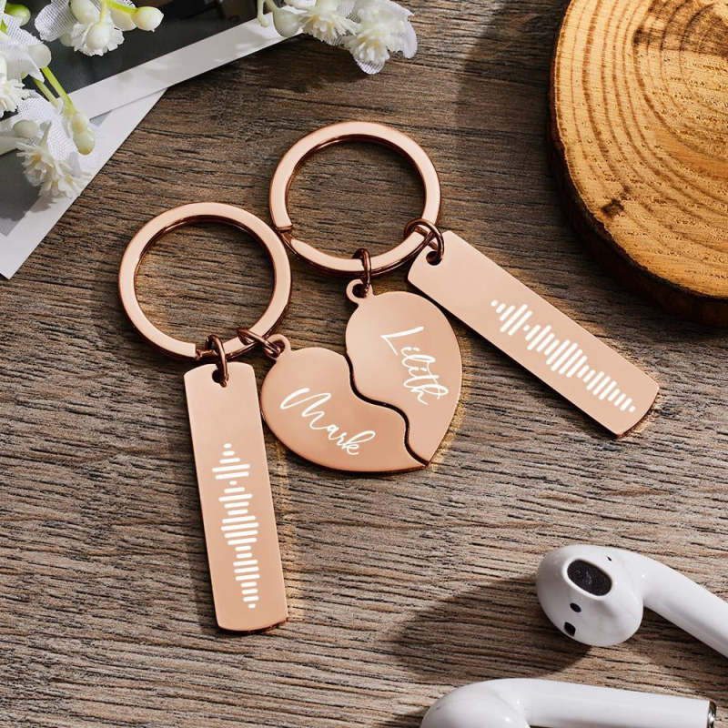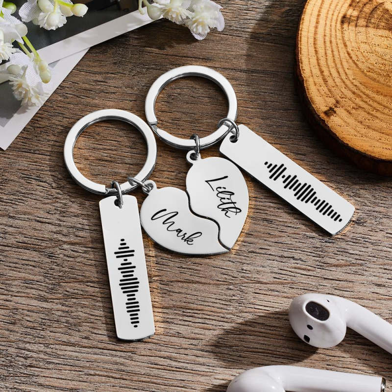 Personalized Music Code Keychain Custom Name in Heart Shape Keychain for CoupleValentine's Day