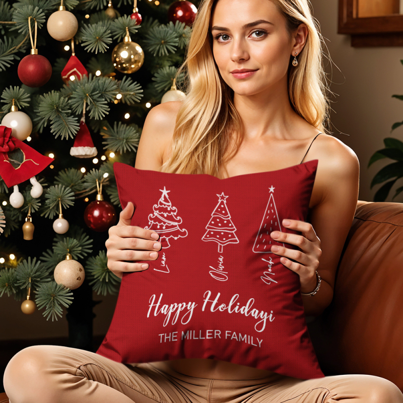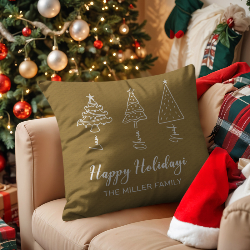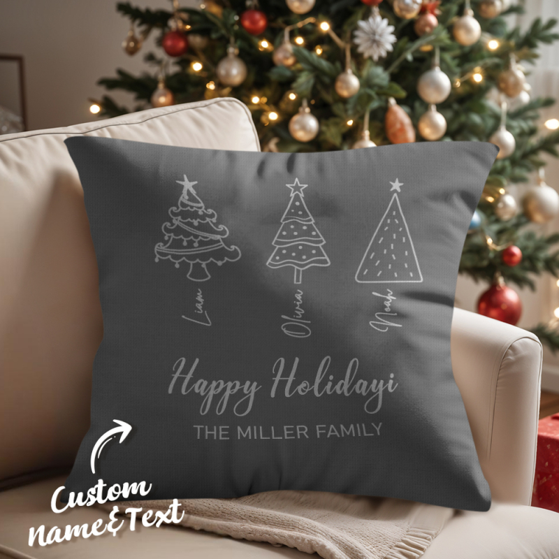 Personalized Name Scripted Christmas Tree Personalized Throw Pillow