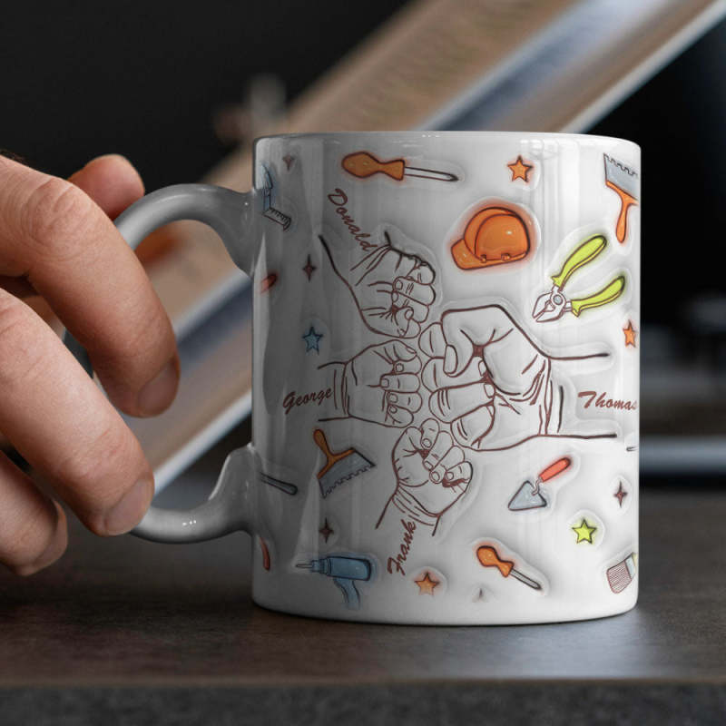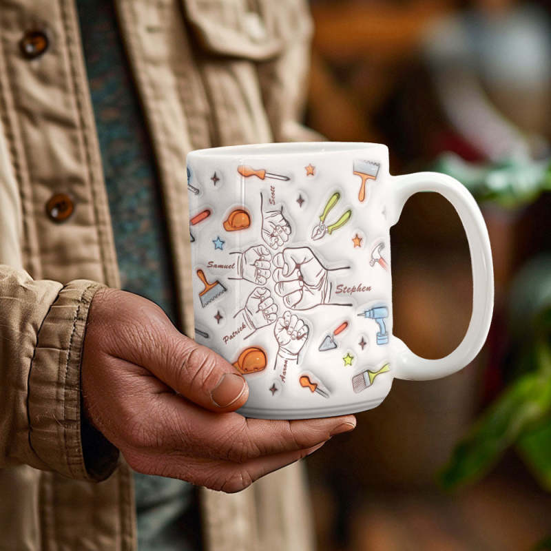Personalized Names Custom 1-6 Kids 3D Inflated Effect Printed Mug Gift for Father Grandpa