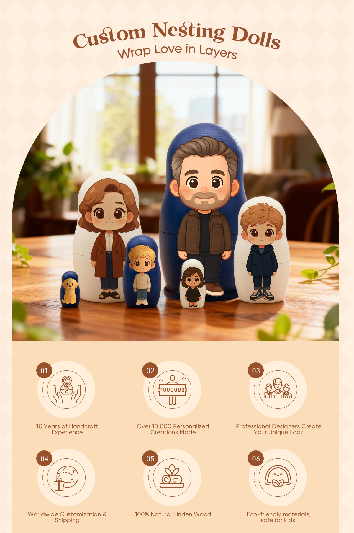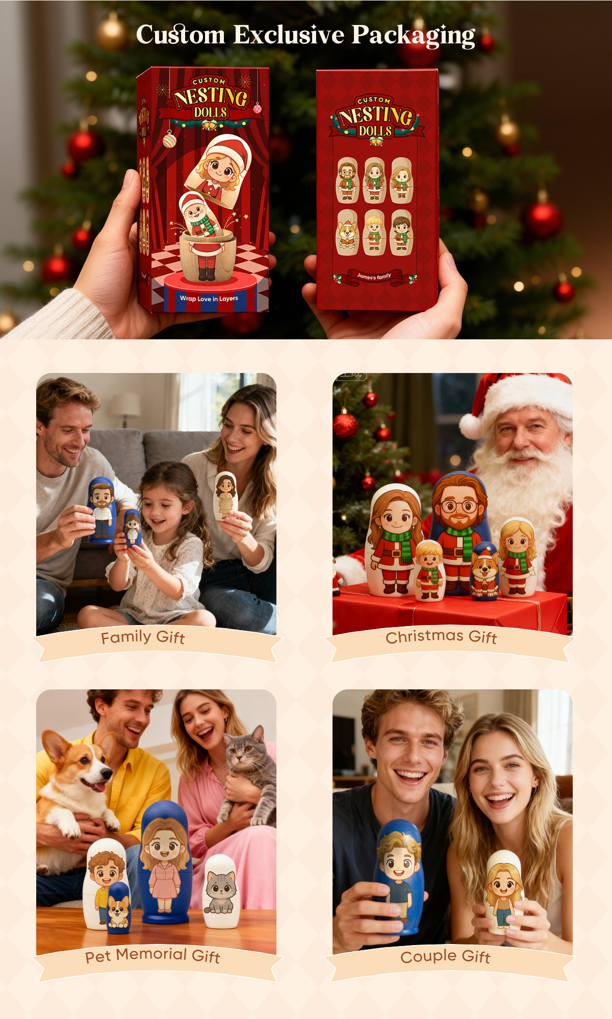 Personalized Portrait Nesting Doll Custom Photo Family Portrait Cartoon Style Gift Photo Christmas Gift