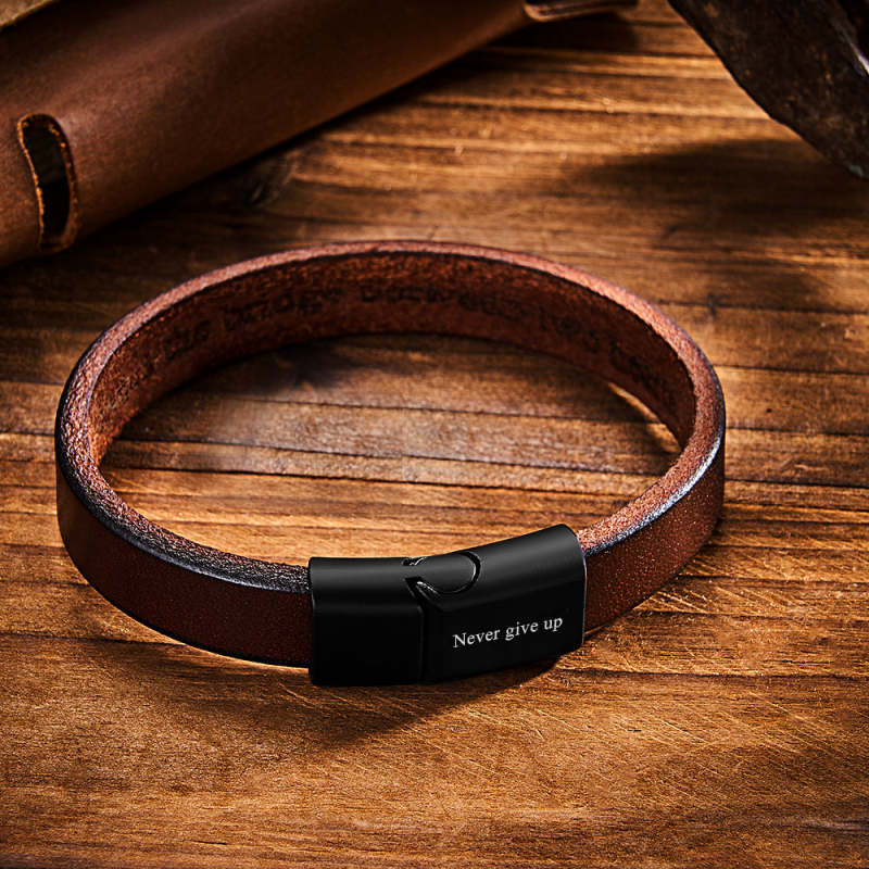 Retro Simple Leather Bracelet With Text Magnetic Buckle Bracelet For Men
