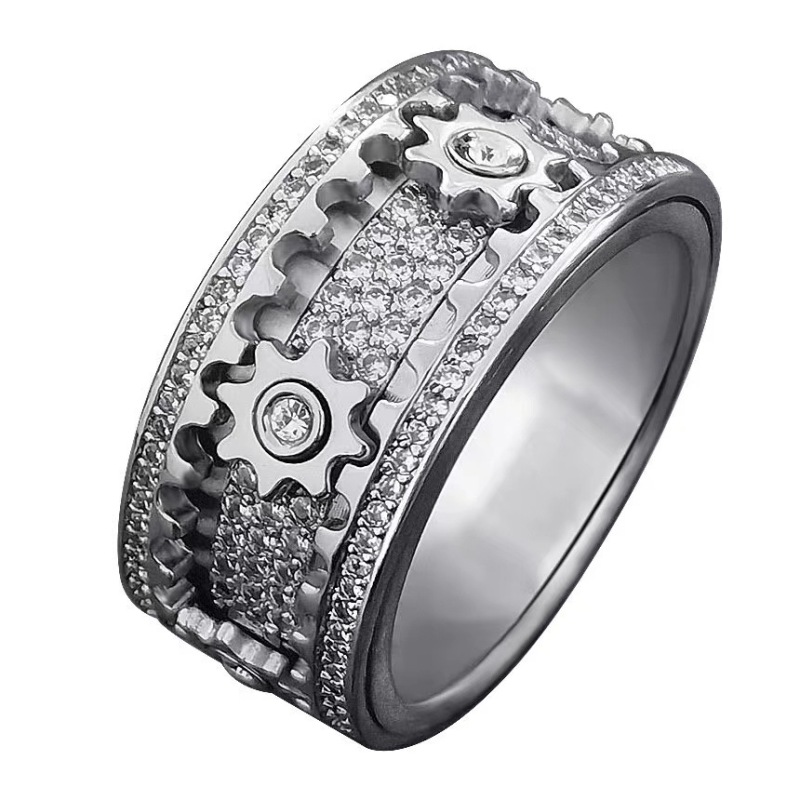 Rotating Gear Spinner Ring for Men & Women Stainless Steel Anxiety Relief