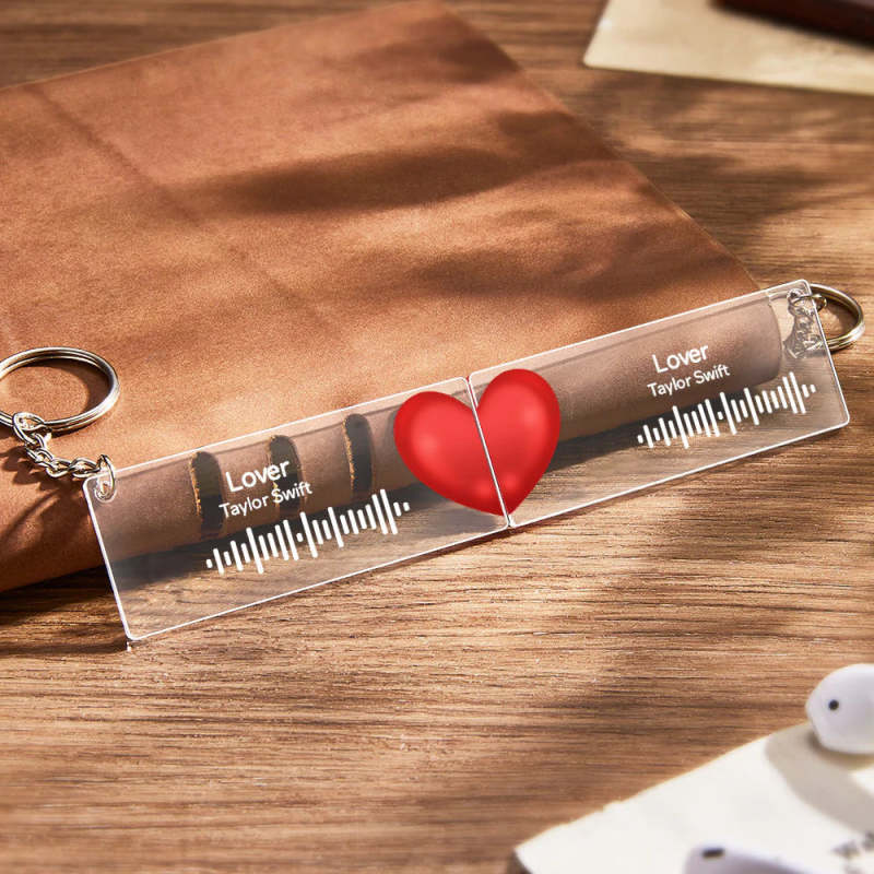 Scannable Custom Code Keychain Acrylic Music Heart Keychain Romantic Couple GiftsValentine's Day