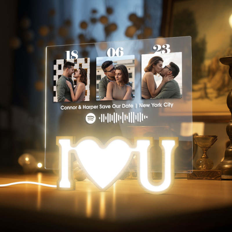 Valentine Gift Personalized Photo Plaque Custom Night Light LOVE Night Light Spotify Plaque Lamp with Spotify Code