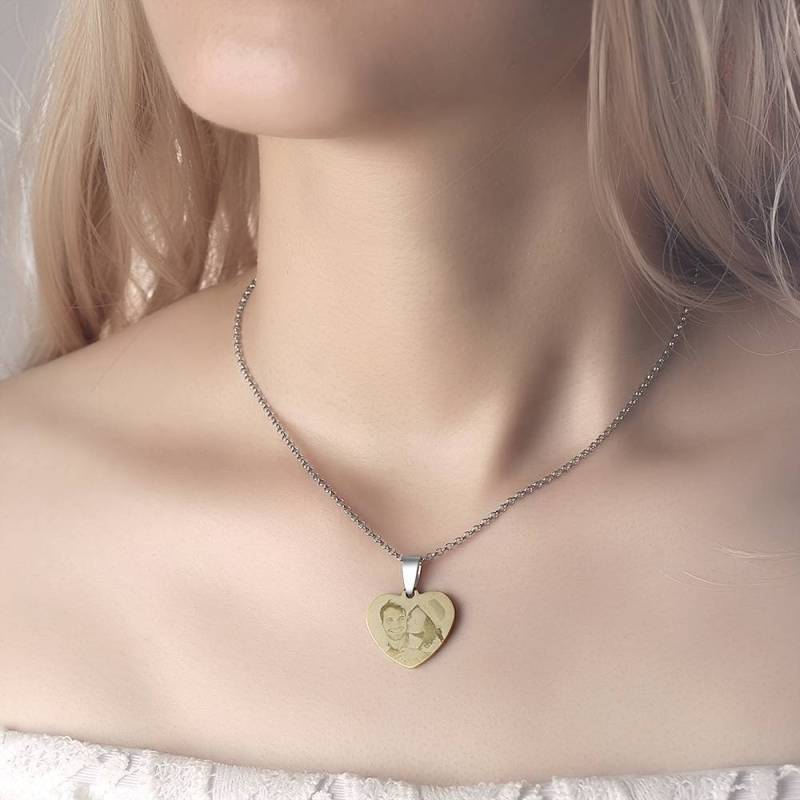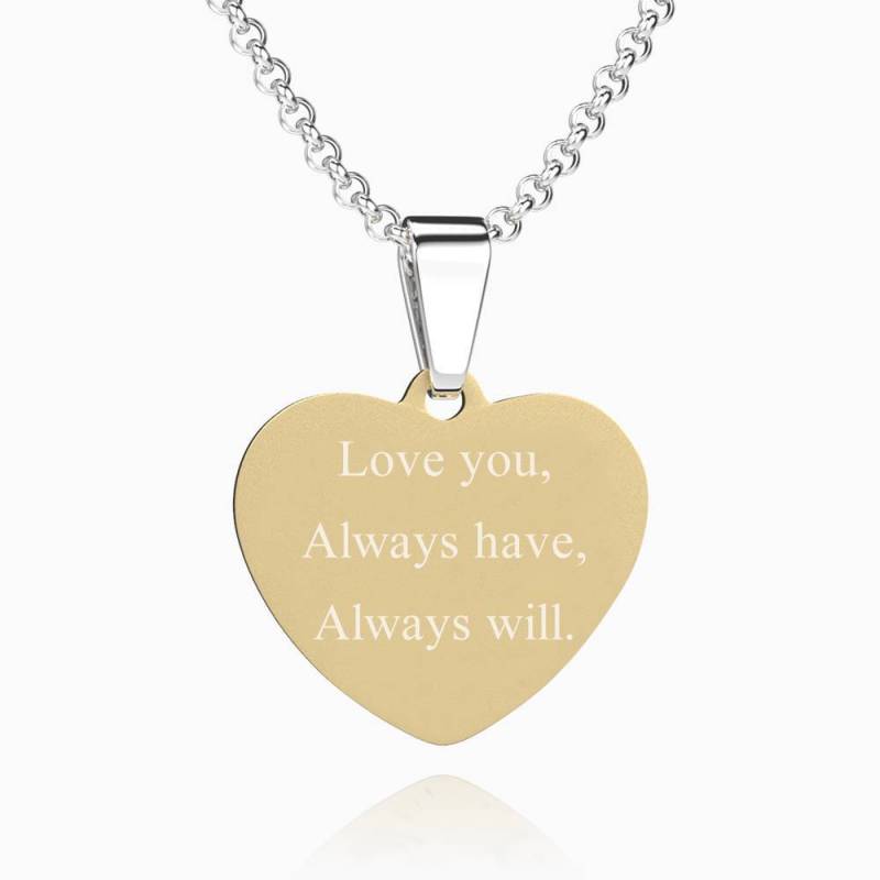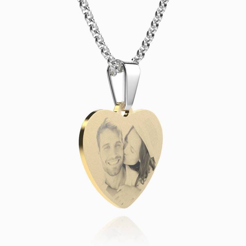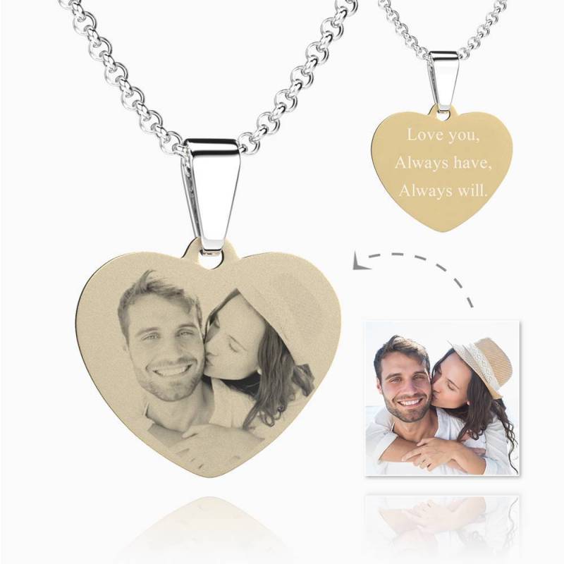 Women's Heart Photo Engraved Dog Tag Necklace 18k Gold Plated Stainless Steel