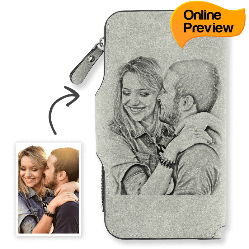 Women's Long Style Custom Photo Wallet Grey (Design Online & Preview)