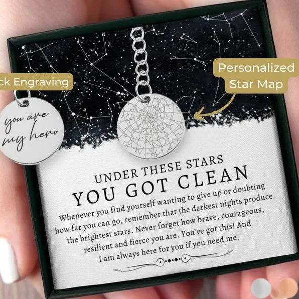 Addiction Recovery Medallion Coin Custom Star Map By Date Keychain Recovery Chips Anniversary Gifts for Men Women Him Her Encouragement Gift