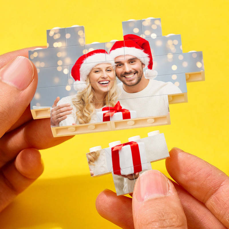 Custom Building Brick Personalized Photo & Text Block Heart Shaped Gifts for Christmas