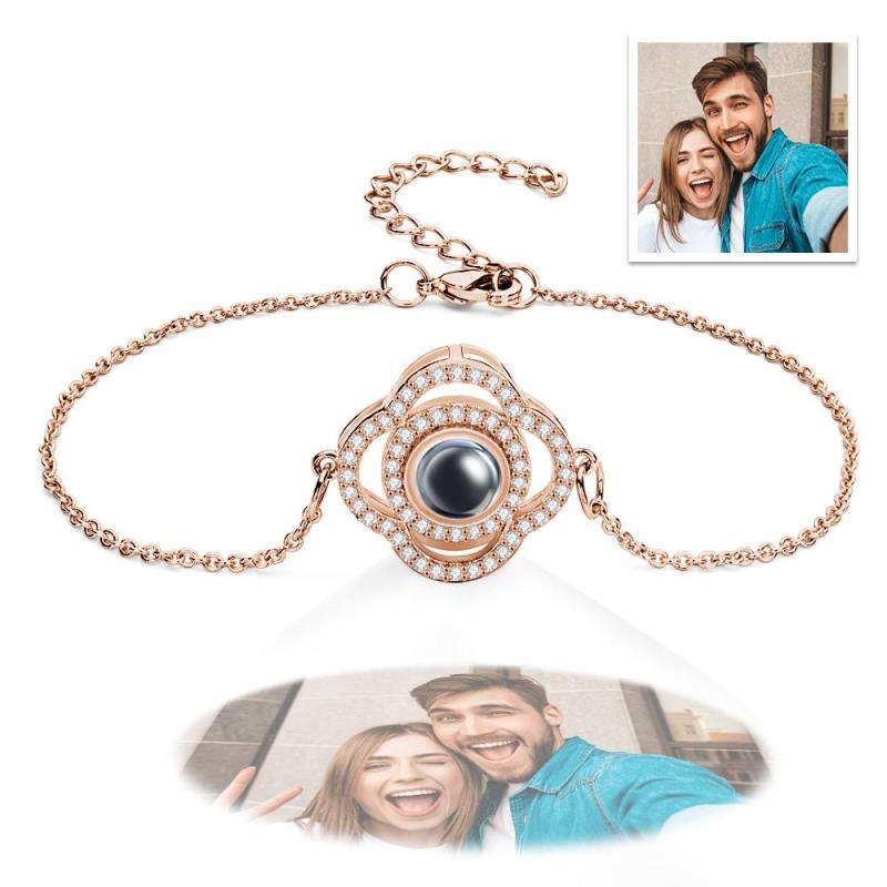 Custom Clover Photo Projection Bracelet Personalized Picture Inside Bracelet Keepsake Jewelry
