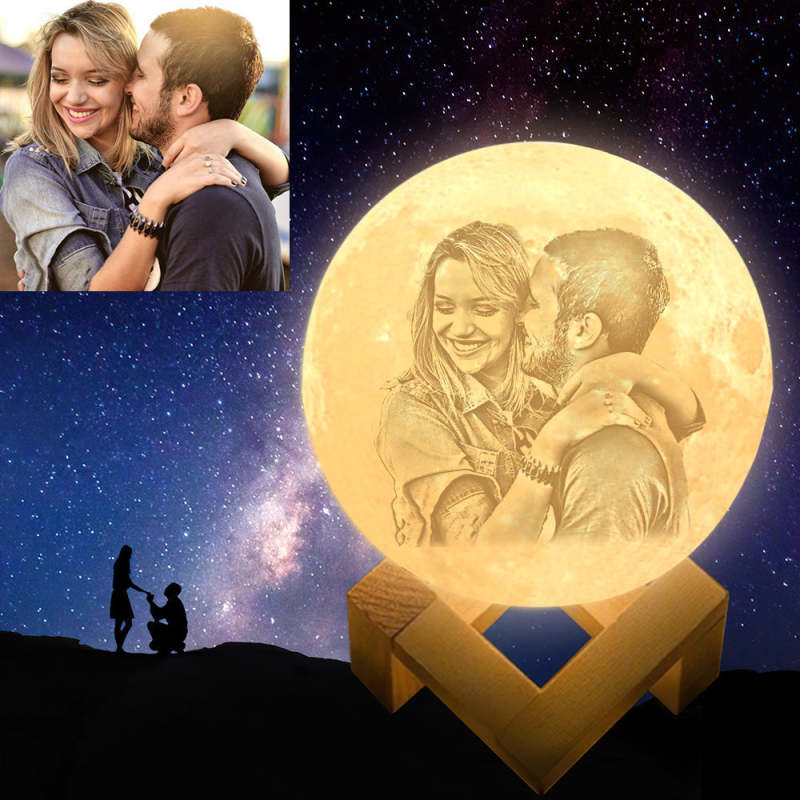 Anniversary Gifts Custom Engraved 3D Photo Moon Lamp | Tap to Convert 2 Colors | Best Gift For CoupleValentine's Day