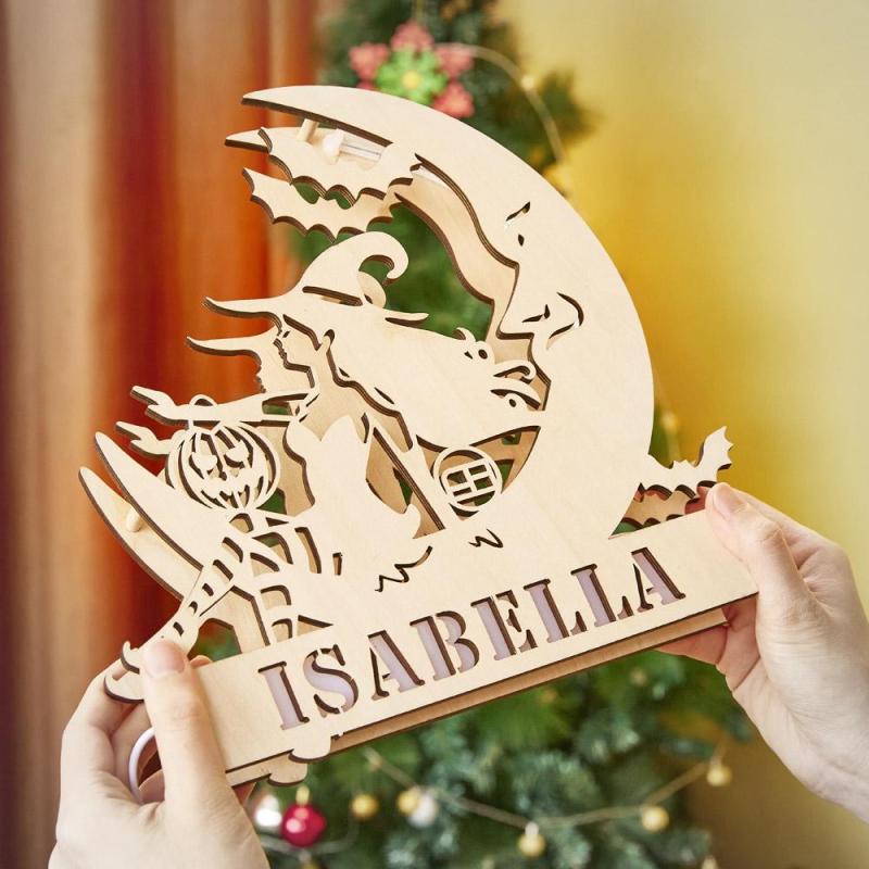 Custom Engraved Lamp Witch Moon LED Nightlight Gift for Friends