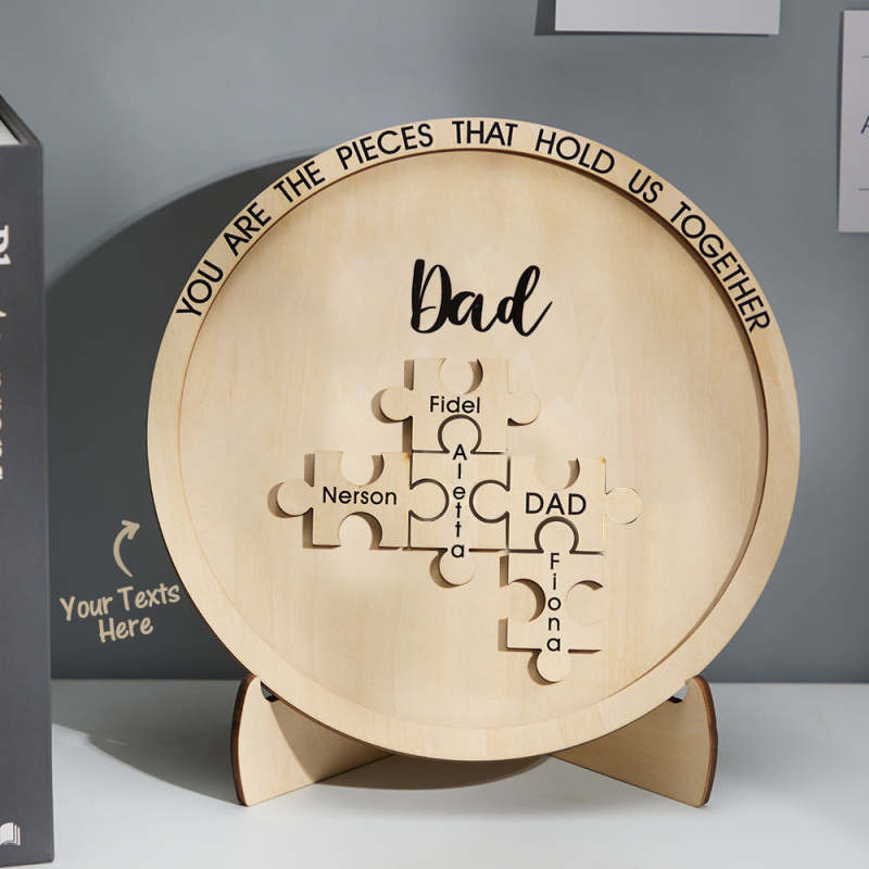 Custom Engraved Ornament Round Wooden Puzzle Pieces Sign Gifts for Parents
