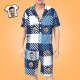 Custom Face Short Sleeve Blue Stripe Grid Pajamas