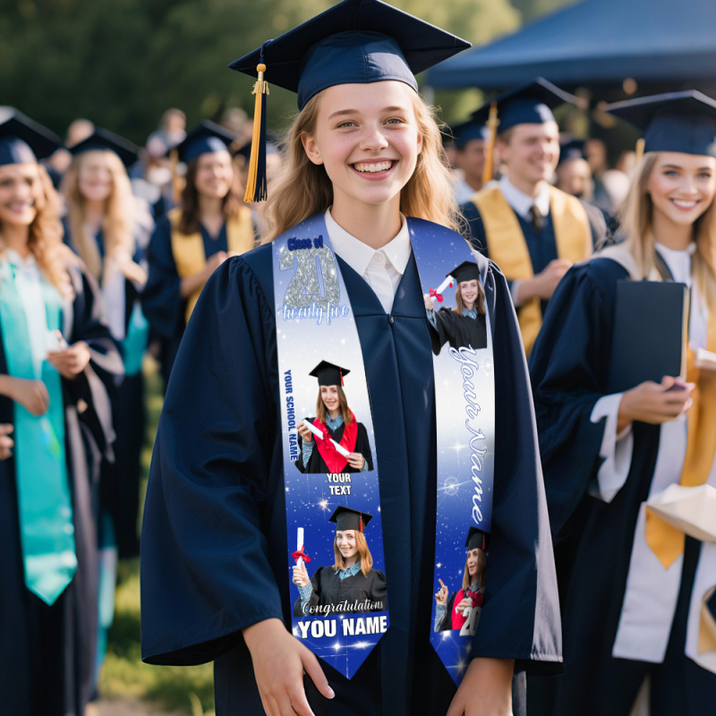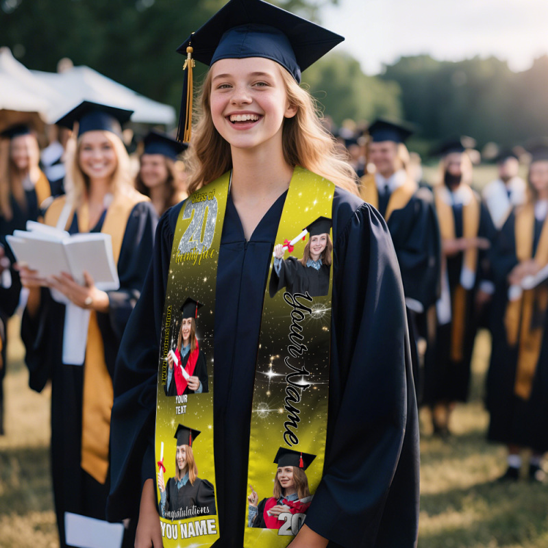 Custom Graduation Stole with photos, Your Colors Personalized Stole,Personalized Text Grad Stole Sash,Gift for Graduate,Class of 2025