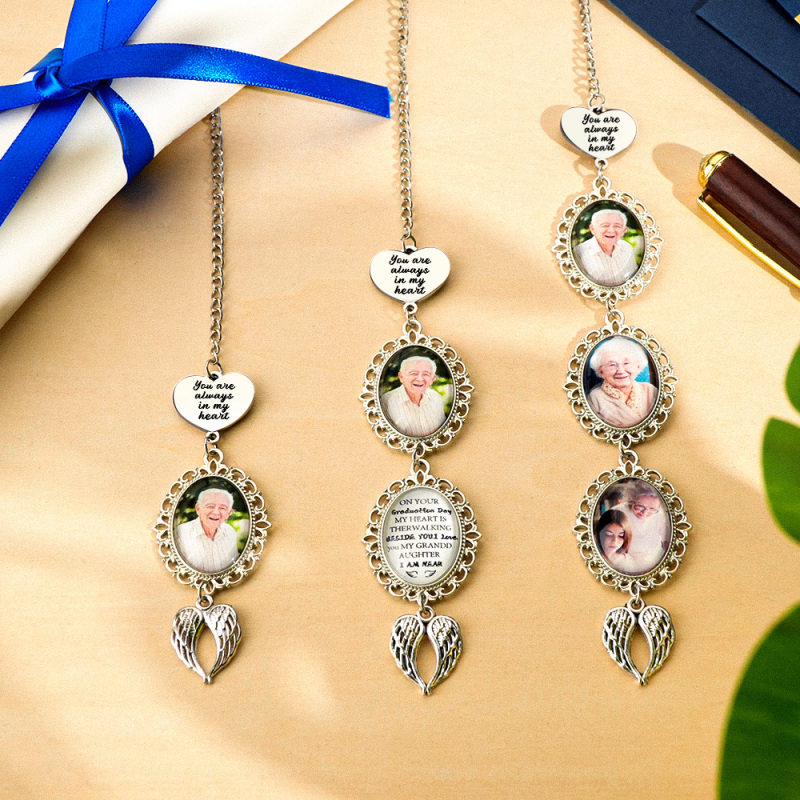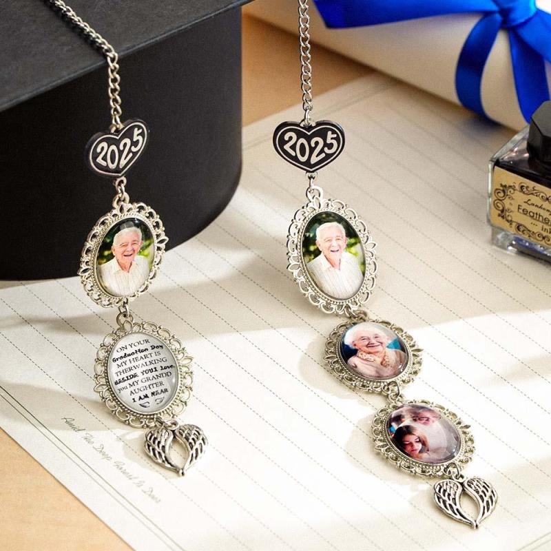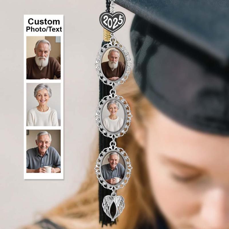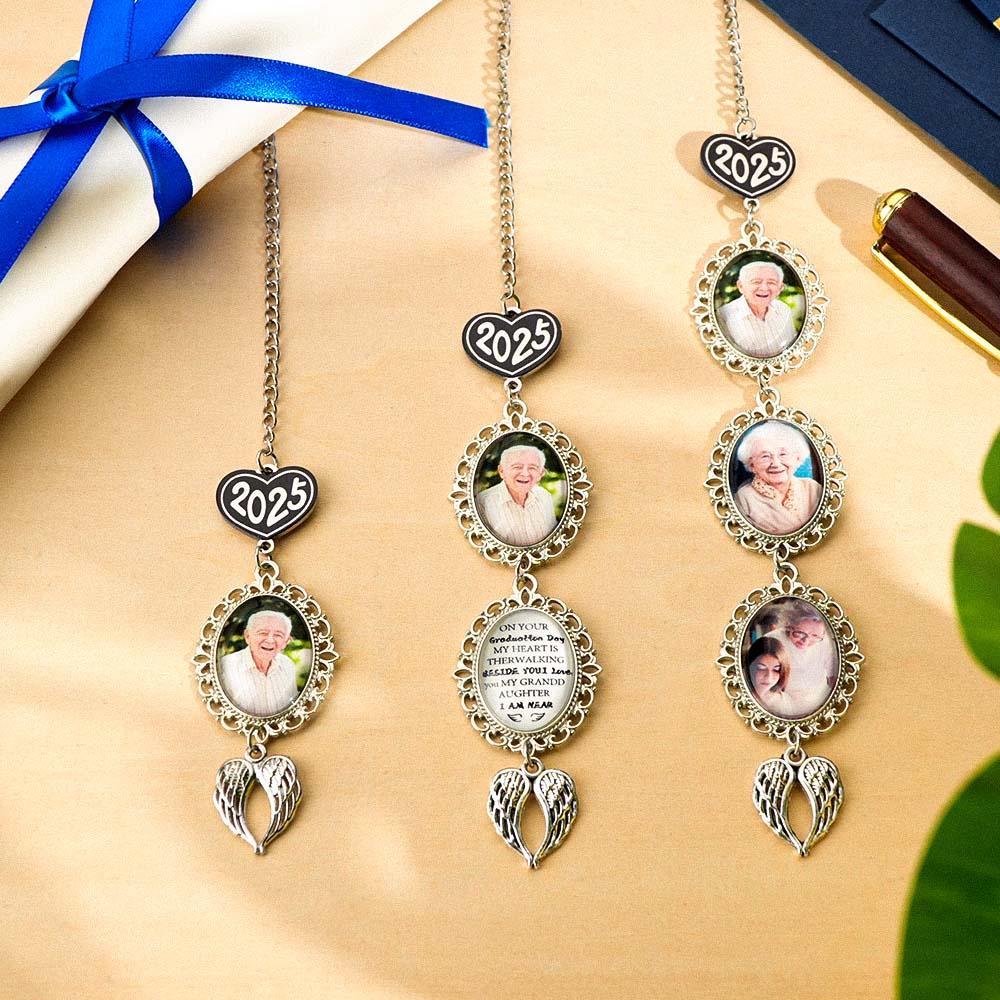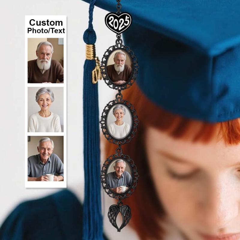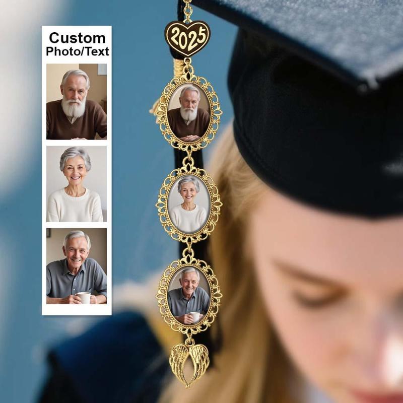 Custom Graduation Tassel Photo&Text Charm with Angel Wing,Memorial Graduation Gift For Her,2025 Graduation Memorial Tassel for grad cap