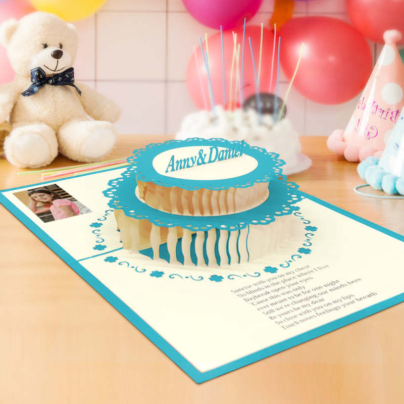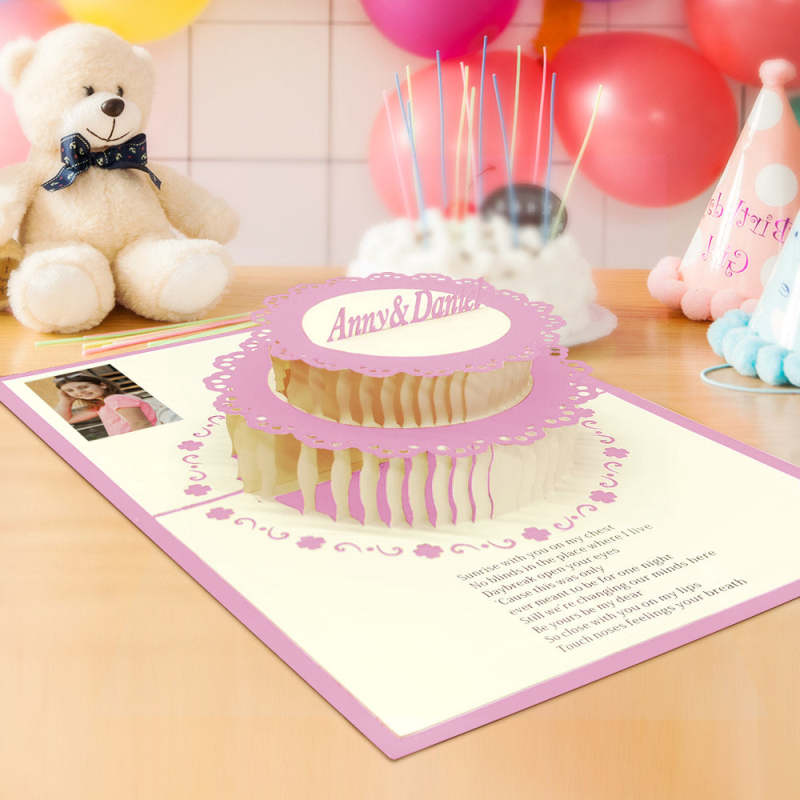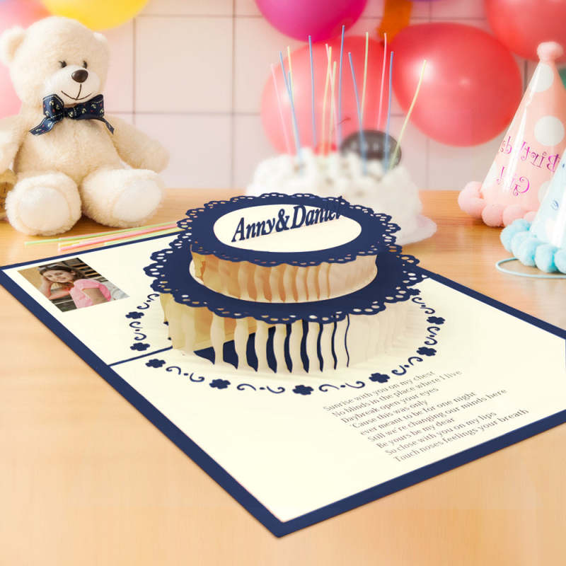 Custom Photo 3D Pop Up Birthday Cards Personalized Name Birthday Cake Pop Up Greeting Card