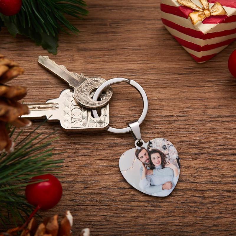 Custom Photo Engraved Text Keychain Color Printing Heart Shape