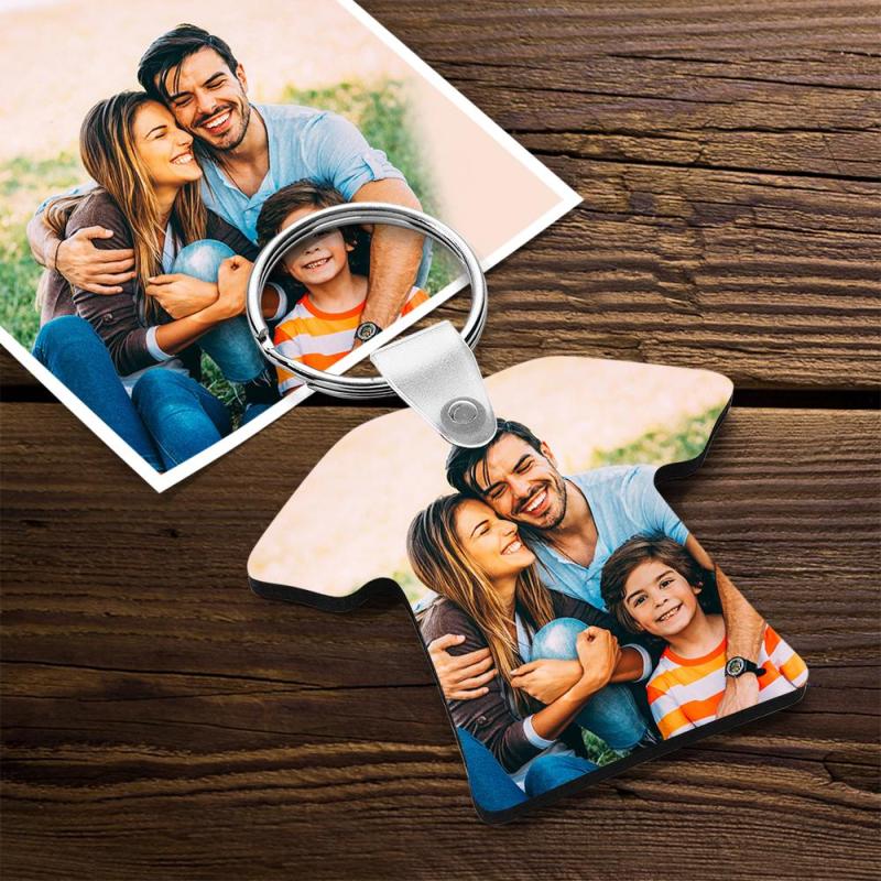 Custom Wooden Photo Keychain T-shirt Shape