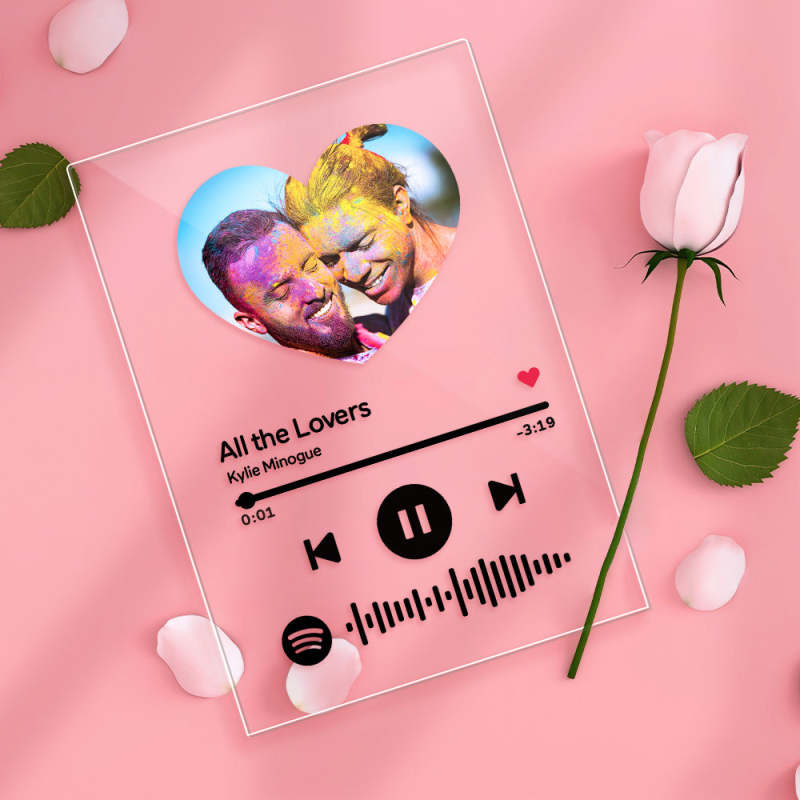 Gift For LGBT Spotify Picture Frame Custom Spotify Code Keychain, Plaque & Night Light - Heart Shaped