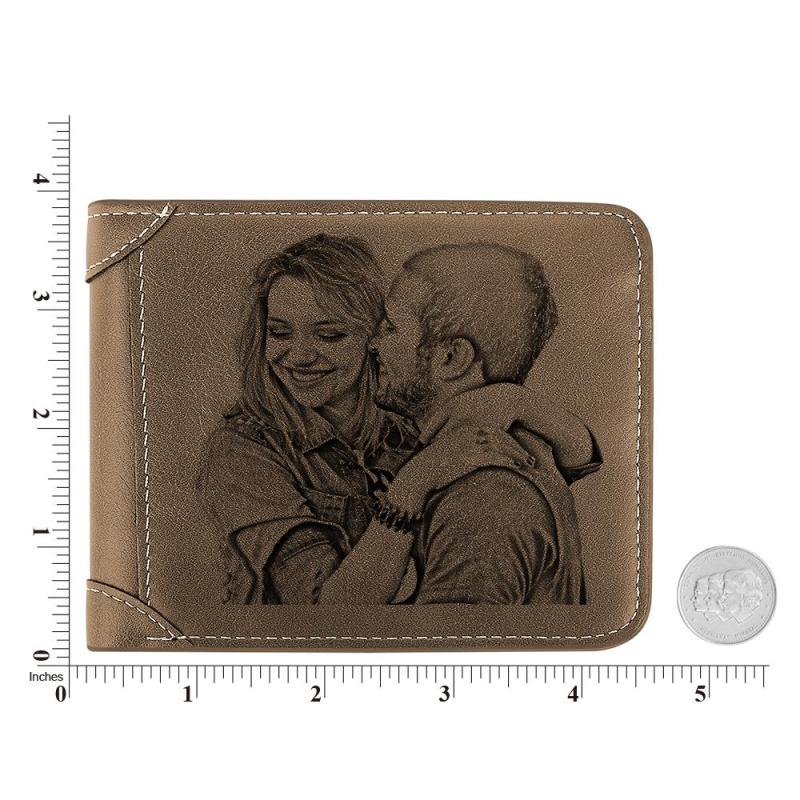 Men's Custom Photo Engraved Wallet Brown Leather (Design Online & Preview)