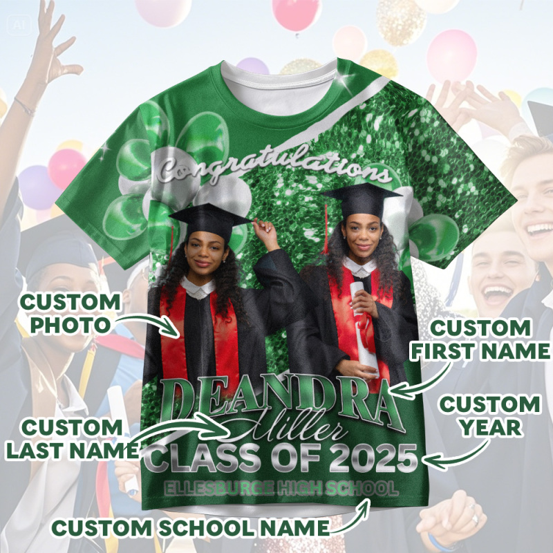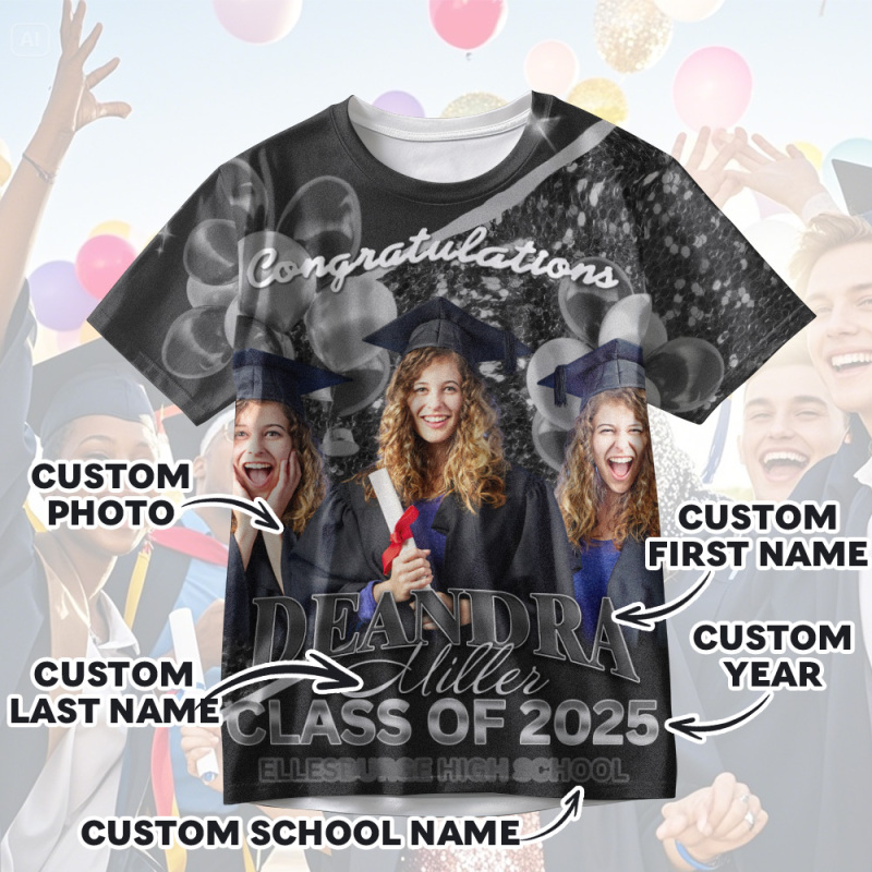 Personalized Photo 3D Graduation T-Shirt with Name & Year Gift
